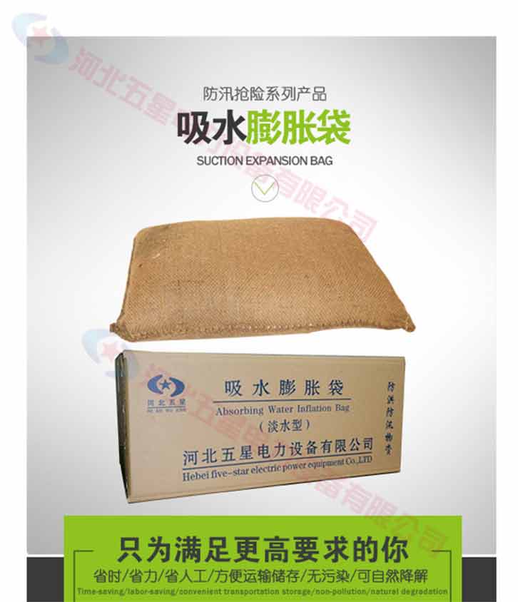 以水治水,快速膨脹,管涌以及快速構(gòu)筑擋水壩,封堵缺口,替代沙袋,替代沙袋和編織袋。操作簡(jiǎn)單,攜帶運(yùn)輸方便,遇水膨脹速度快,浸入水中 3 分鐘即可迅速膨脹至 18 ~ 20 千克,吸水膨脹袋 經(jīng)現(xiàn)場(chǎng)測(cè)試比沙土包堵截速度快9倍,使用時(shí)只需一人就可以完成,勞動(dòng)強(qiáng)度大為減輕,無(wú)毒,無(wú)害,無(wú)味,無(wú)污染,可自然降解