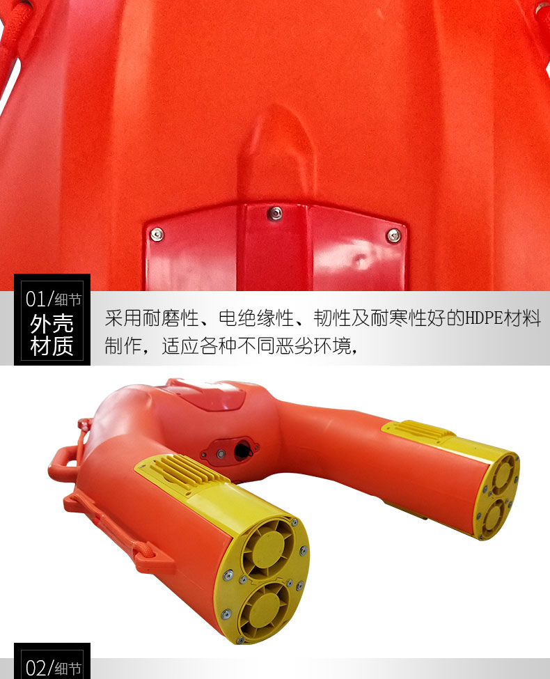智能遙控救生器,外殼采用耐磨性、電絕緣性、韌性及耐寒性好的HDPE材料制作,適應(yīng)各種不同惡劣環(huán)境,目前搭配的動(dòng)力系統(tǒng)是安全性很好的鋰電池集成系統(tǒng),使用安全,內(nèi)置9軸陀螺儀,可以識(shí)別姿態(tài)信息,自動(dòng)切換左右,海浪沖翻后也能恢復(fù)姿態(tài)并保持航線運(yùn)行。