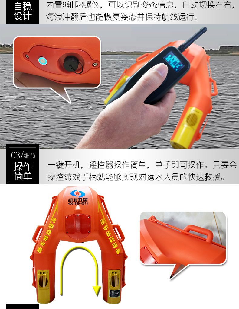 河北五星“霸王龍”WX-500型水上救生遙控機(jī)器人(智能型救生圈、智能型遙控救生圈)用于落水人員的救援,時(shí)速可達(dá)4米/秒,一旦碰到險(xiǎn)情,會(huì)以很快的速度來到你身邊。智能型救生圈操作簡單,只要會(huì)操控游戲手柄就能夠?qū)崿F(xiàn)遠(yuǎn)距離、快速、精準(zhǔn)送達(dá),實(shí)現(xiàn)對落水人員的快速救援。