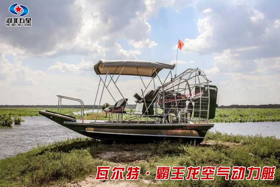 河北五星“霸王龍”水陸兩棲空氣動力艇是一種運用空氣動力學、采用航空發(fā)動機和空氣螺旋槳推動,通過置于船體上部的大功率內燃機帶動碳纖維螺旋槳產生空氣動力的多地形交通工具。所搭載的航空發(fā)動機動力系統(tǒng)強勁,功率可達300馬力以上,螺旋槳推力可達500公斤以上,操縱機動靈活,靜水巡航速度可達40km/h,可以高時速可達70km--120km/h。