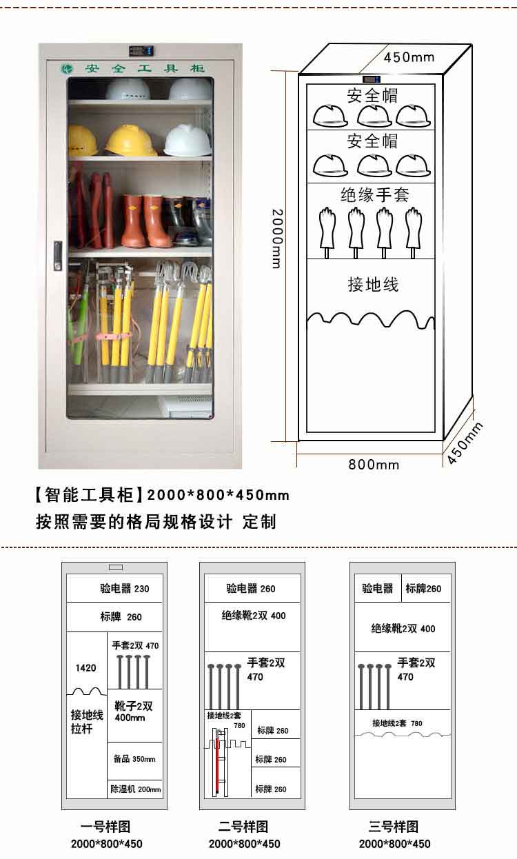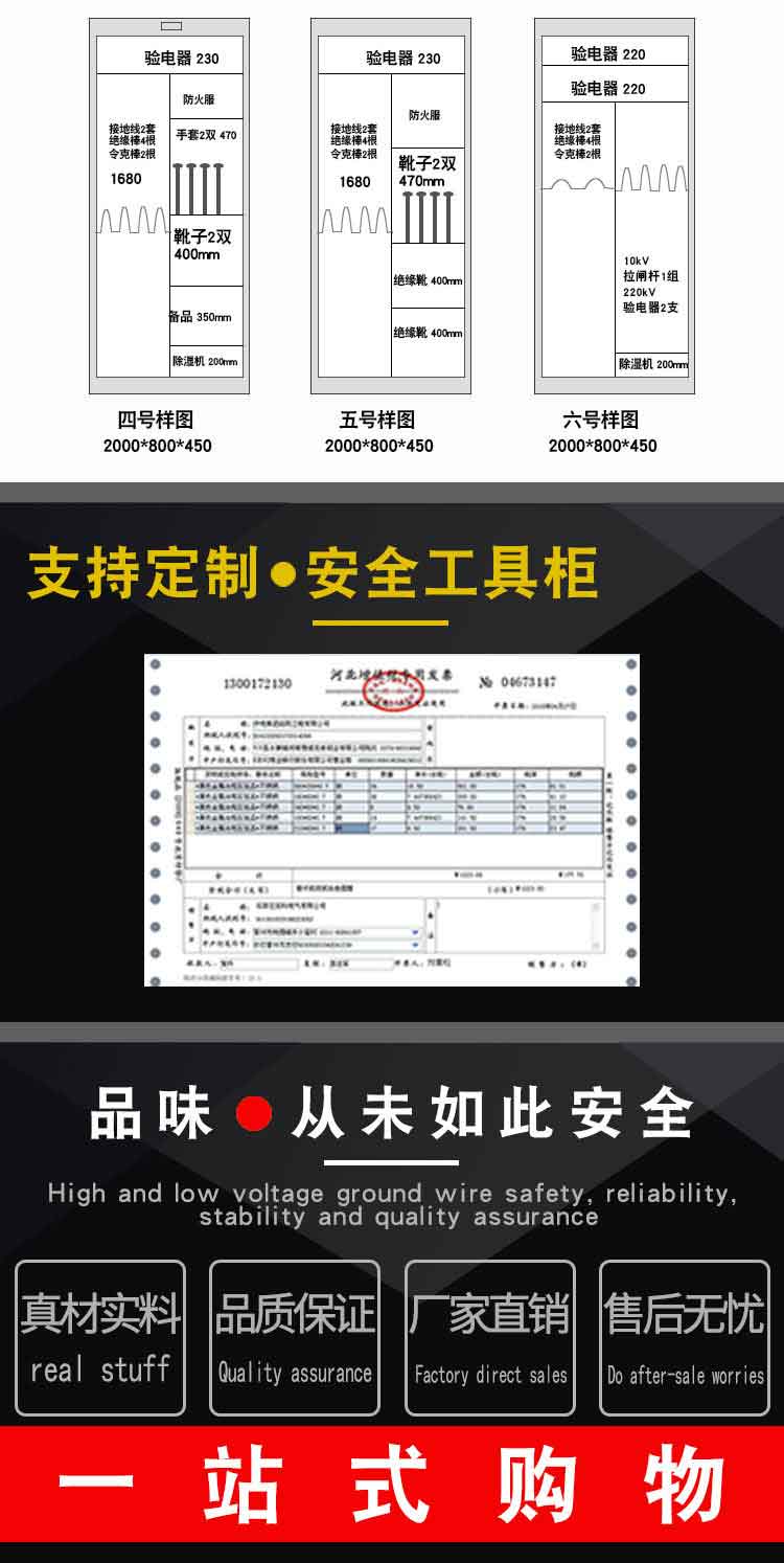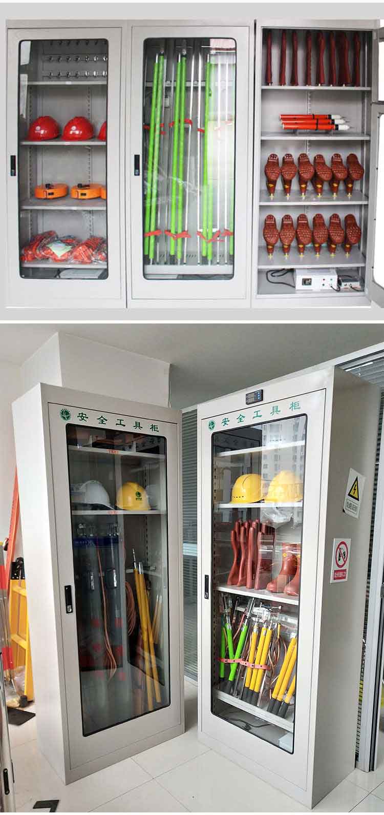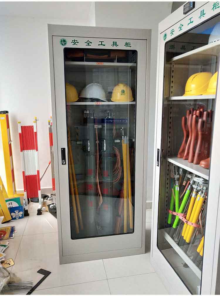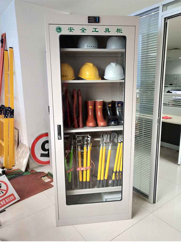 電力安全工具柜又稱安全工器具柜,按功能可以分為普通排風(fēng)除濕柜,智能烘干除濕柜,智能抽濕除濕柜等 外殼選用1.2優(yōu)質(zhì)冷板,采用磷化鋅系、藝術(shù)型靜電噴涂,高強度鋼化透明玻璃(外觀色為微機灰)。接地線均配有接地線繞線架及帶夾反光編號牌,使接地線纏繞規(guī)范不易損壞,擺放整齊使用方便;絕緣手套配有防粘連撐板,絕緣擋板、絕緣棒、驗電筆、操作桿均設(shè)有橡膠墊定位卡,安全帶、腳扣、鑰匙設(shè)有專用掛鉤,標(biāo)示牌按種類分格放置,圍網(wǎng)配有專用包,網(wǎng)桿配有專用筒,網(wǎng)桿座分格放置,防毒面具配有專用箱,呼吸器設(shè)有專用滑板。廣泛應(yīng)用于各種電壓等級的變電站、集控站、線路工區(qū)以及電力公司客服中心等單位和部門,并適應(yīng)不同溫濕度地區(qū)的使用。