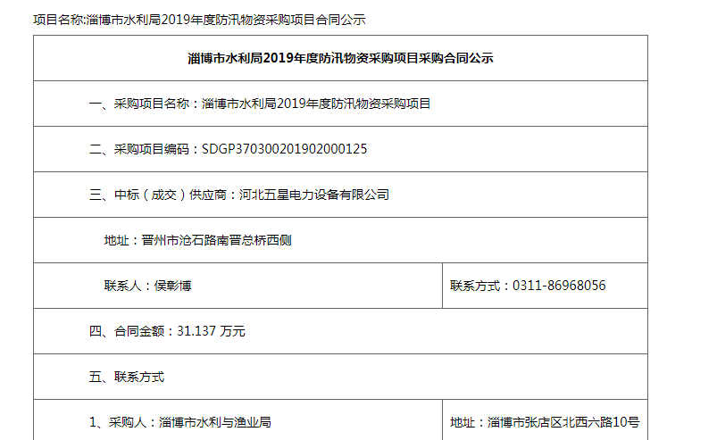 熱烈祝賀河北五星淄博市水利局2019年度防汛物資采購項目一舉中標(biāo)!